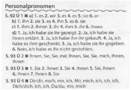 - ถ้าทั้งสองกรรม (Objekt) เป็นคำสรรพนาม กรรมตรงมาก่อนกรรมรอง