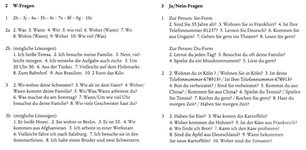 - ระวัง เราใช้ wo (ที่ไหน) เมื่อถามถึงสถานที่ ส่วน woher (จากไหน) และ wohin (ไปไหน) เมื่อถามถึงทิศทาง