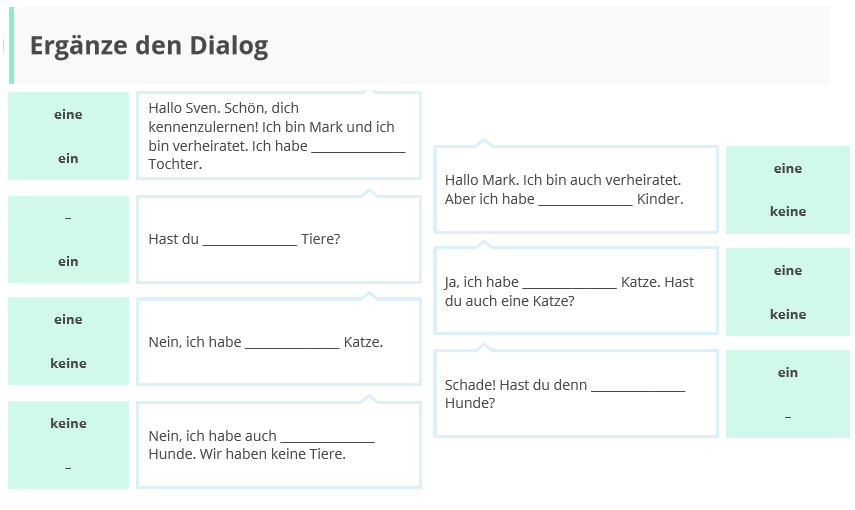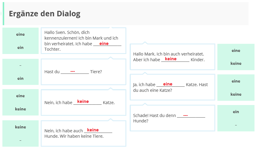 หากคุณต้องปฏิเสธคำนาม คุณแค่ต้องเพิ่ม k + คำนำหน้านามที่ไม่เจาะจง (unbestimmter Artikel)
