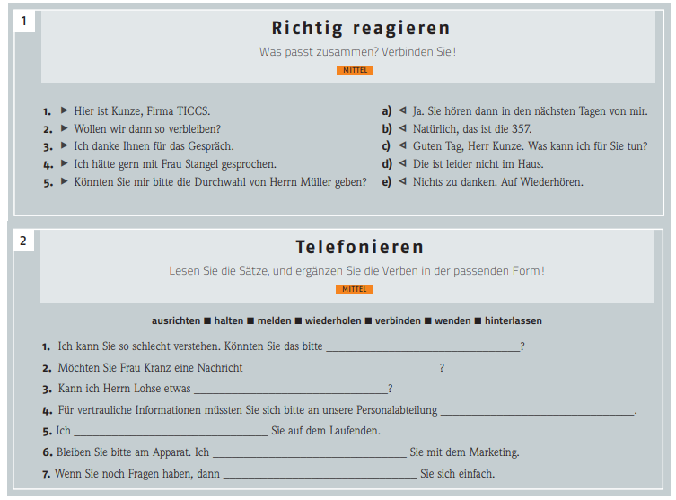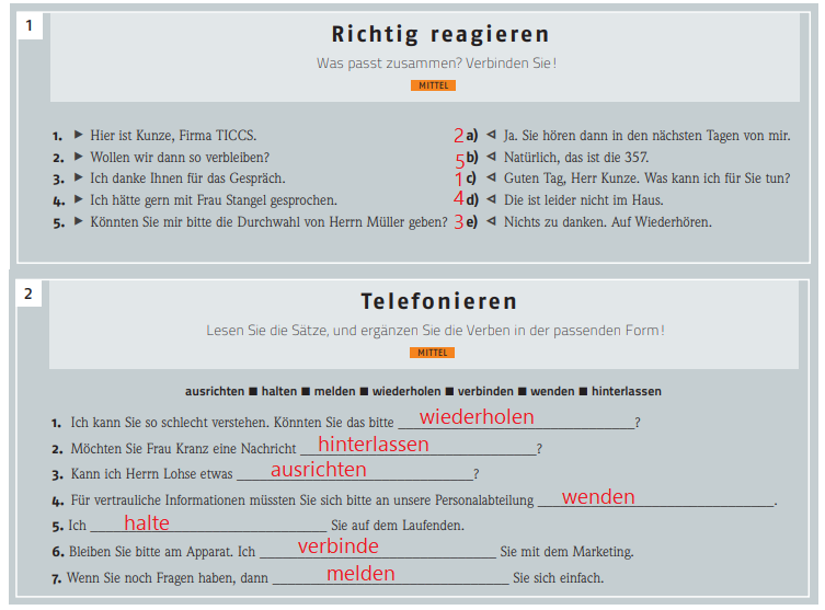 - So sagen Sie, worum Sie sich kümmern werden oder was Sie nach dem Telefongespräch tun werden: