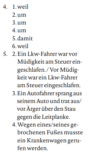 - คำบุพบท (Präposition) wegen และ aufgrund ตามด้วยคำนามการกสัมพันธ (Nomen im Genitiv) สามารถนำมาใช้แทนที่ประโยคสาเหตุ ส่วนใหญ่ใช้ในภาษาเขียน